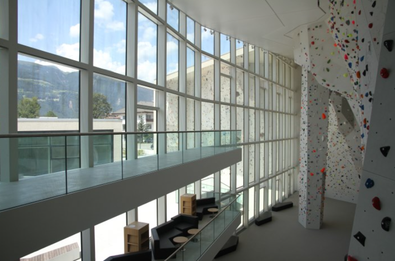 Die neue Kletterhalle in der Schulzone von Bruneck soll für schulische Zwecke als auch für außerschulische Freizeitaktivitäten ganztägig genutzt werden. Es sind drei verschiedene Kletterhallen (Vorstiegsbereich, Schulungsbereich, Boulderhalle) samt Umkleiden und ein Außenkletterbereich mit Tribüne für ca. 200 Zuschauer vorgesehen.