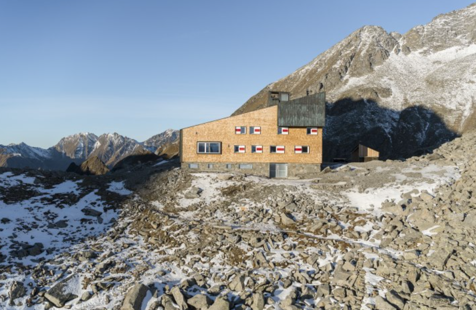 Die neue Edelrauthütte vereint Funktionalität, Symbolik und Ökologie in einer einheitlichen, klaren und einfachen Bauweise.
