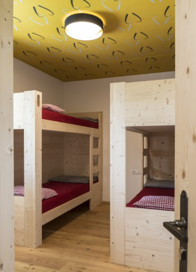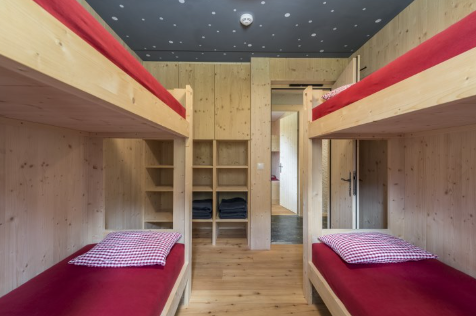 Im Erdgeschoss gibt es neben dem Eingang, die Sanitärräume, die Räume für den Pächter und die Stube, im ersten und zweiten Stockwerk gibt es Zimmer mit unterschiedlicher Bettenanzahl (80); das Winterlager ist im zweiten Stock untergebracht und über eine Außentreppe erreichbar.