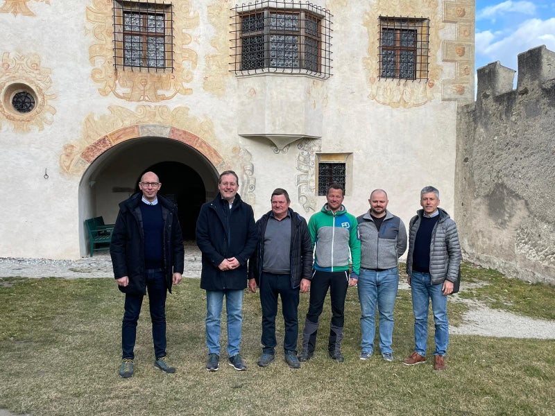 Hochbau- und Vermögenslandesrat Massimo Bessone hat sich kürzlich vor Ort ein Bild vom Fortgang der Arbeiten gemacht. Mit dabei waren auch Daniel Bedin, Direktor der Landesabteilung Vermögensverwaltung, und Luca Carmignola, Direktor des Landesamtes für technische Gebäudeverwaltung, sowie der Feldthurner Bürgermeister Konrad Messner und Vizebürgermeister Patrick Delueg .