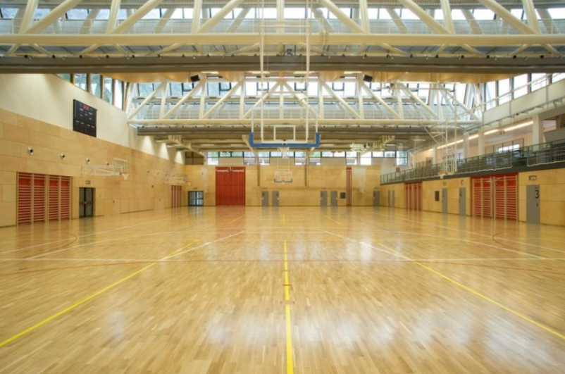 Durch die Erweiterung der bestehenden Turnhalle Richtung Süden entstand eine Dreifachturnhalle (Sporthalle) mit den Dimensionen des Spielbereiches von 27 x 45 m. Es entstanden zwei zusätzliche Einheiten mit den jeweiligen Umkleide- und Nassräumen (die bestehenden wurden vollständig saniert). Die Zuschauertribüne wurde über die gesamte Länge der Turnhalle erweitert, wodurch die Zuschauersitzplätze auf 288 erhöht wurden.