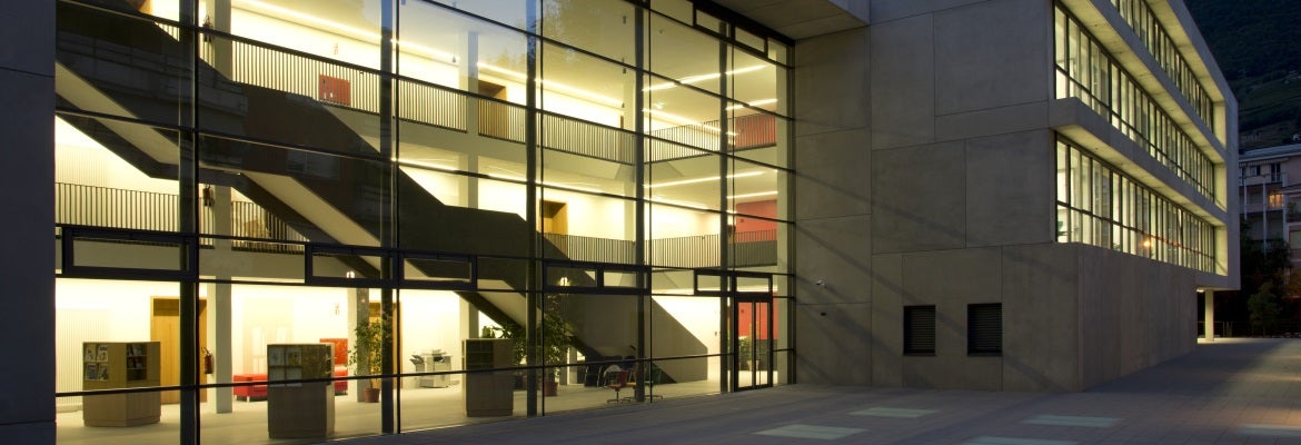 Die Aula Magna ist direkt über den Eingangsbereich erschlossen und kann als Mehrzweckraum für Versammlungen, Vorführungen, Ausstellungen, gegebenenfalls auch extern genutzt werden.