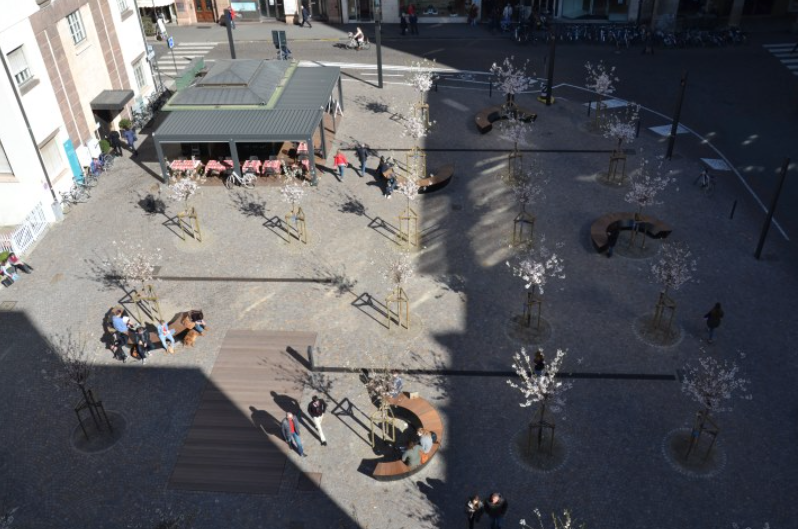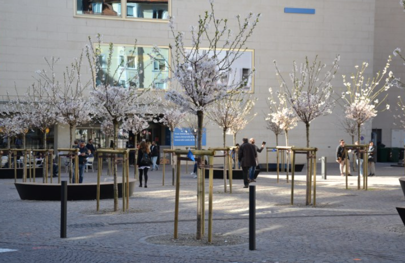 Der Universitätsplatz ist nun endlich ein Raum zum Verweilen, eine kleine Oase mitten in der Stadt, für die Bozner Bevölkerung und die Universitätsgemeinschaft.