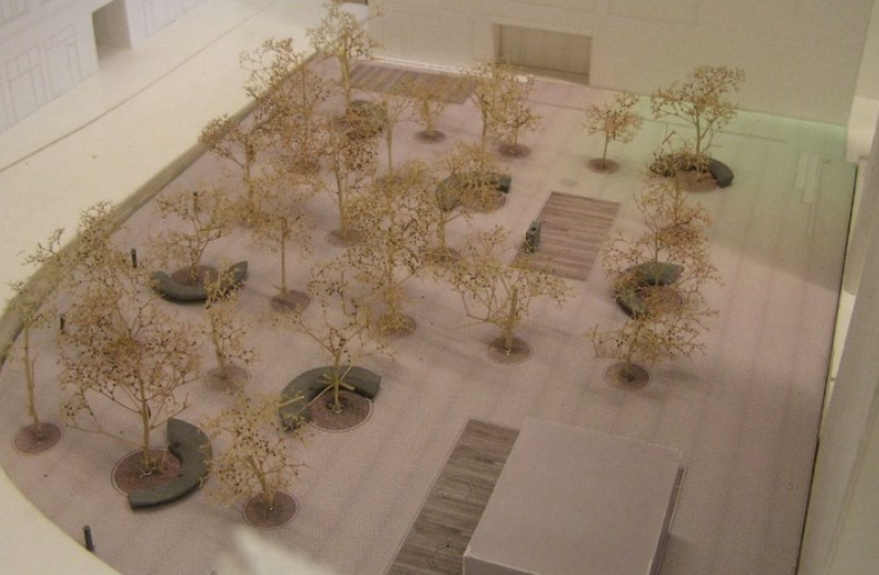 Auf der Grundlage des Ergebnisses zum durchgeführten Planungswettbewerb wurde nun das Siegerprojekt des Arch. Stanislao Fierro umgesetzt. Es überzeugt durch einfache und konsequente Anordnung eines städtischen Waldes im urbanen Umfeld.